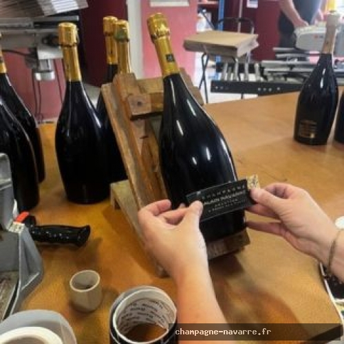 Dernière touche avant la dégustation : l’habillage. Chaque bouteille est parée de ses étiquettes et de sa coiffe. Ces éléments graphiques sont à la fois esthétiques et informatifs, et reflètent l'identité de notre maison.