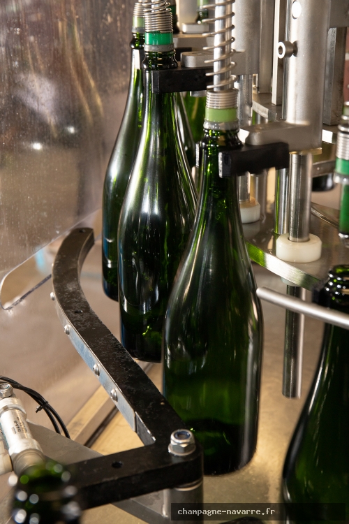 Après l’assemblage vient l’étape du tirage : le vin est mis en bouteille avec l’ajout d’une liqueur de tirage, un mélange de sucre et de levures sélectionnées. Ce mélange déclenche une seconde fermentation directement dans la bouteille.