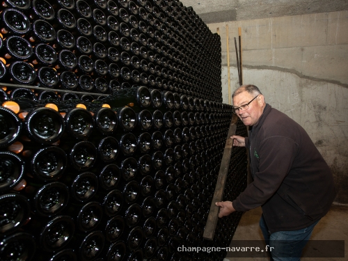 Pendant toute cette phase, les bouteilles restent couchées, empilées sur des lattes de bois, dans l’obscurité et la fraîcheur constante des caves.